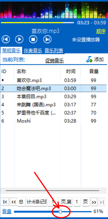6.1、如何做到,平常只播放音乐,促销信息播放的时候,音乐自动停止,等促销信息播放完,音乐又自动开始播放?
